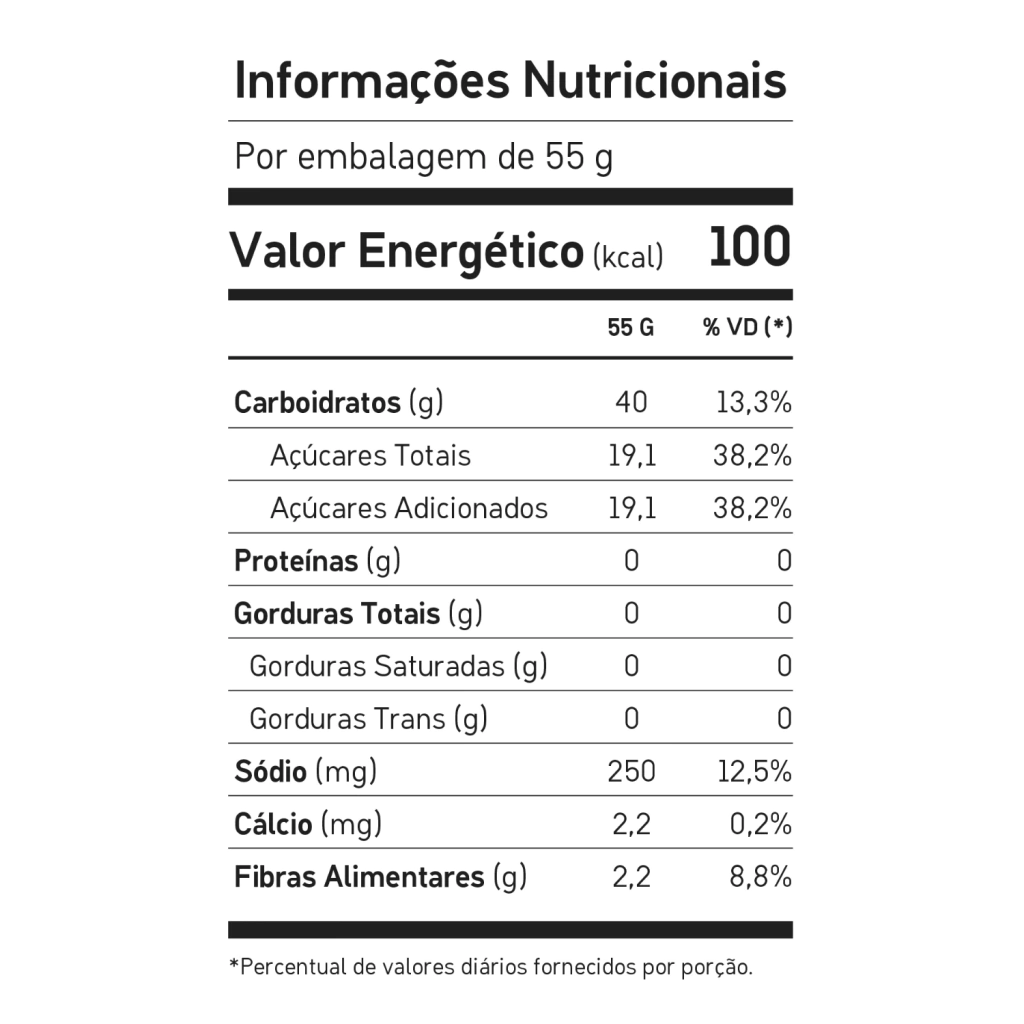 Cada embalagem contém 2 mini barras com 20g de carboidratos cada