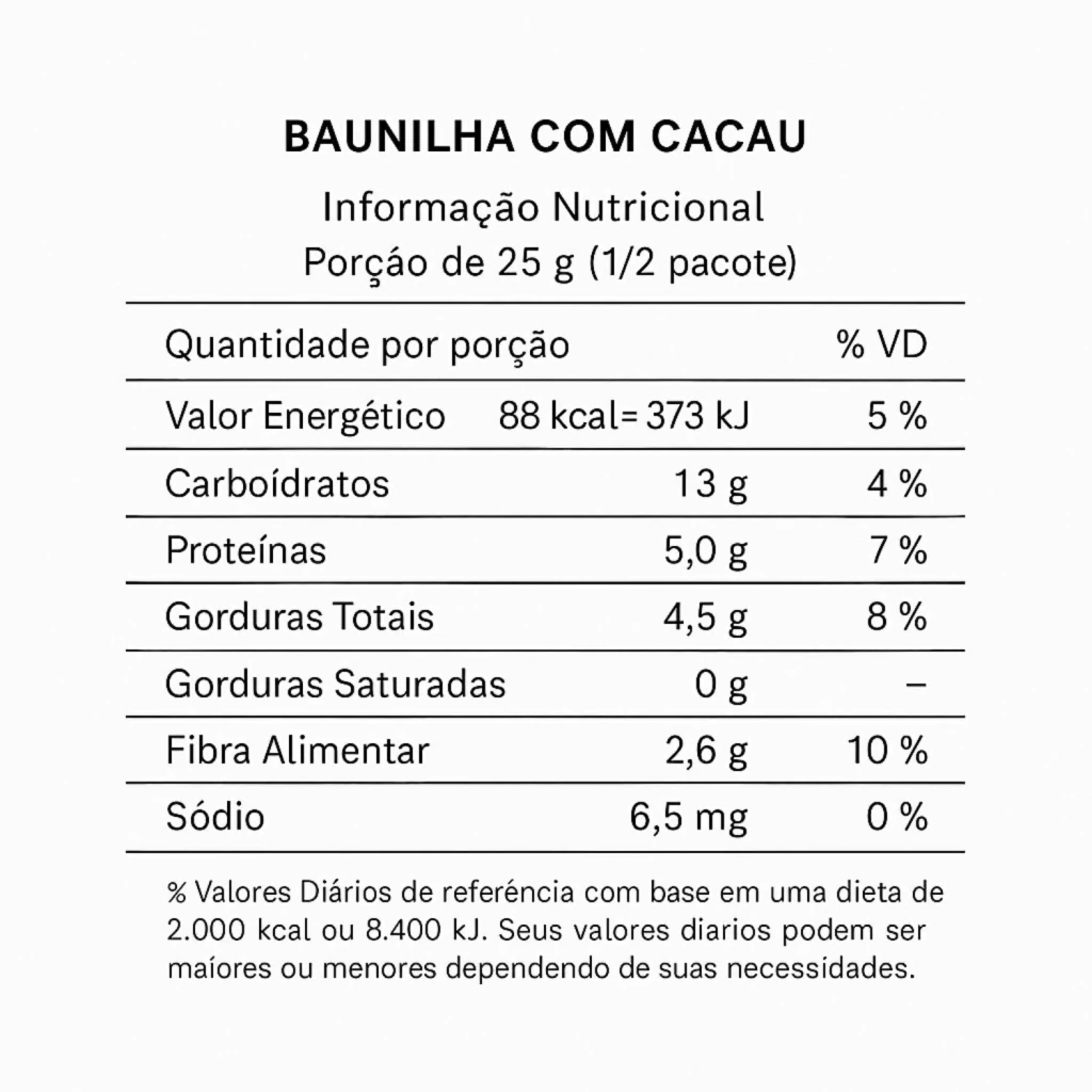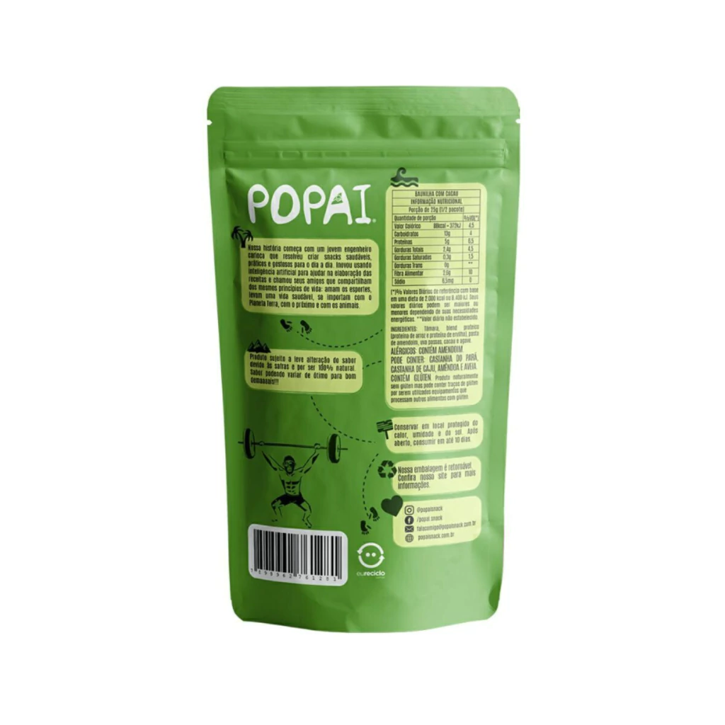 Com 10g de proteína por porção, o snack Popai sabor Baunilha com Cacau é a união perfeita entre funcionalidade, sabor e nutrição! Uma excelente escolha para quem busca um lanche proteico com ingredientes saudáveis e 100% naturais, sem adição de açúcar ou aditivos químicos.