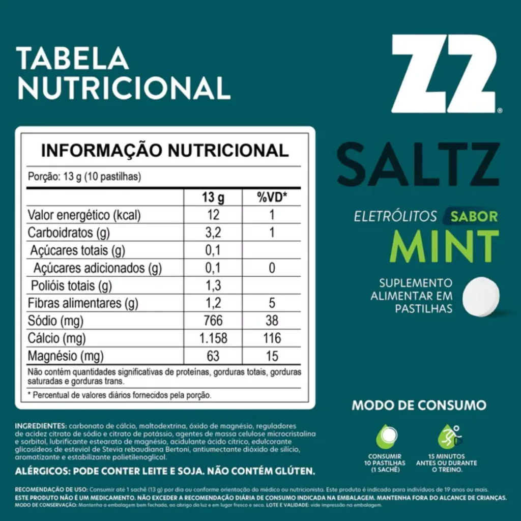 As pastilhas Saltz Z2 Mint são as primeiras pastilhas de eletrólitos mastigáveis do Brasil, desenvolvidas para fornecer uma reposição de eletrólitos rápida, personalizada e prática. Essenciais para prevenir a desidratação, retardar a fadiga e evitar câimbras, essas pastilhas ajudam a manter os níveis de eletrólitos no corpo durante atividades físicas intensas. Os sais minerais desempenham várias funções cruciais no organismo, como equilibrar os fluidos corporais, manter o pH adequado do sangue e conduzir sinais elétricos dos nervos para os músculos.