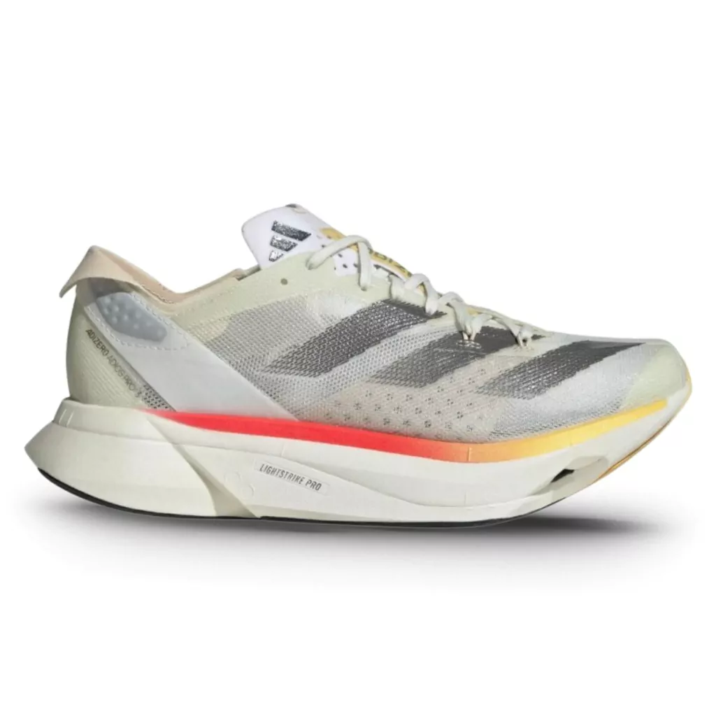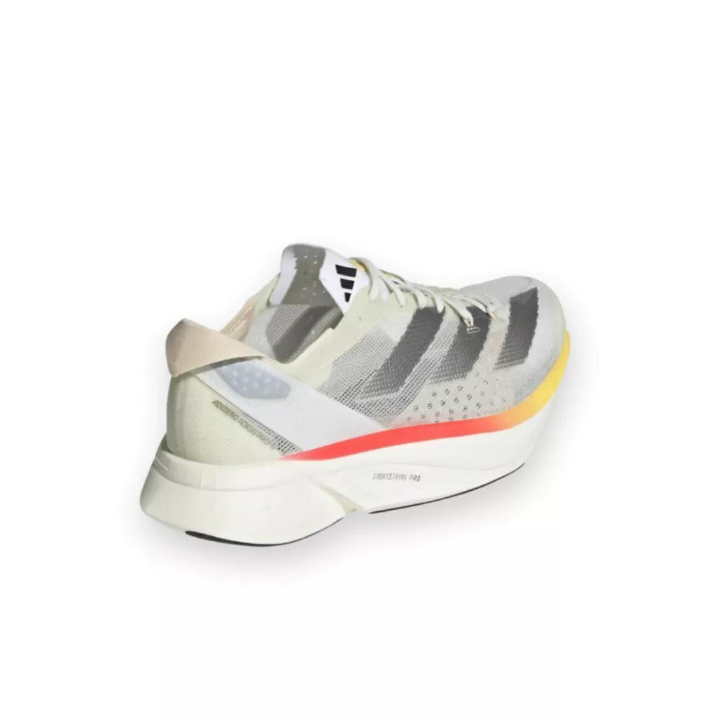O Adizero Adios Pro 3 é o ápice dos produtos Adizero Racing. Ele foi feito com e para atletas, visando entregar benefícios inacreditáveis. Este tênis de corrida adidas foi projetado para otimizar a eficiência da corrida. Nossos ENERGYRODS com infusão de carbono proporcionam rigidez moderada para uma passada mais ágil e eficiente. O Ultralight LIGHTSTRIKE PRO amortece cada passo com duas camadas da nossa espuma mais resistente, ajudando você a manter a energia em longo prazo. Tudo isso sobre uma fina camada de solado de borracha têxtil para tração extraordinária em condições secas e úmidas.