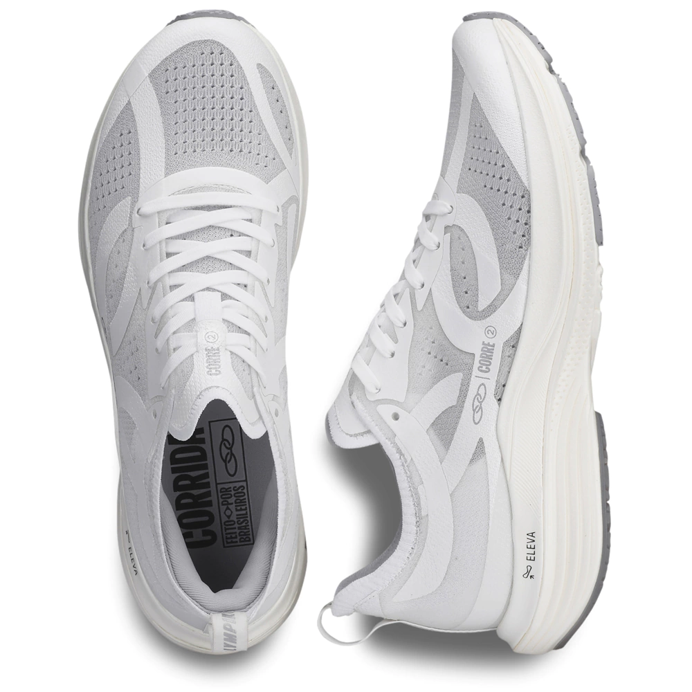 O Olympikus Corre2 é a evolução do Corre1, o nosso melhor tênis de corrida até então. Com o desafio de evoluir o produto, o desenvolvimento do Corre2 contou novamente com um time de especialistas e desta vez, também com o apoio do Laboratório de Biomecânica da USP. A combinação das novas tecnologias de solado e cabedal resultou em um produto extremamente leve, com 42g a menos que a edição anterior, proporcionando muito mais amortecimento e o conforto ideal para uma melhor performance em corridas diárias, treinos longos ou maratonas. A entressola foi desenvolvida com a nova tecnologia Eleva, que explora o limite de expansão do EVA para alcançar máxima resposta, mantendo o conforto e a durabilidade. Este EVA é leve e de baixa densidade, garantindo menor deformação. Possui borracha antiderrapante com a tecnologia Gripper Plus na região dianteira, que aumenta a maciez e conforto na passada. Seus pequenos recortes aumentam a flexibilidade. Na região do calcanhar, conta com borracha compacta na tecnologia Gripper, que aumenta a resistência à abrasão e proporciona estabilidade na aterrissagem da passada. O design da planta do solado foi inspirado no leito do Rio São Francisco, reforçando nossa raíz brasileira. O cabedal é desenvolvido em gáspea retilínea com a tecnologia Oxitec, que possui estrutura de monofilamento com elastano. Esta combinação proporciona leveza, respirabilidade e um maior conforto térmico para a corrida. Além disso, não absorve a água e impede o aumento de peso do calçado em corridas nos dias de chuva. Também possui aplicação de laminado fusionado em TPU acima do tecido, com uma identidade maximalista do logo e que dita o caminho estético de toda a coleção Corre. Possui atacador composto por tecido poliéster texturizado e o puxador em fita na parte traseira conta com aplicação de material refletivo para maior segurança nas corridas noturnas. Eleva: Limite de expansão do EVA. Máxima resposta, mantendo o conforto e a durabilidade. Gripper: Borrachas naturais antiderrapantes feitas de uma resina extraída da seringueira, proporcionando aderência para uma corrida segura. Refletivo: Aplicado em pontos estratégicos, garante maior segurança nas atividades noturnas. Oxitec: Monofilamento com elastano. Maior leveza, respirabilidade e conforto térmico.